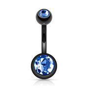14G PVD Coated Steel Navel Belly Button Ring - Double CZ Gems