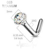 20G Titanium L-Bend Nose Stud - 2mm, 3mm CZ Gem