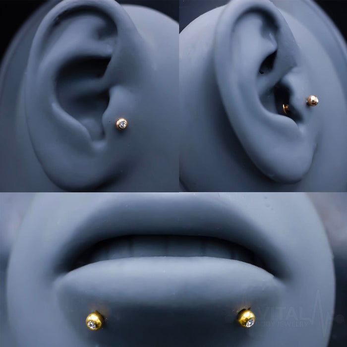 Helix Piercing: Give your helix piercing a touch of sophistication with our surgical steel labrets. The array of colors provides you with endless possibilities to mix and match for a personalized look.
